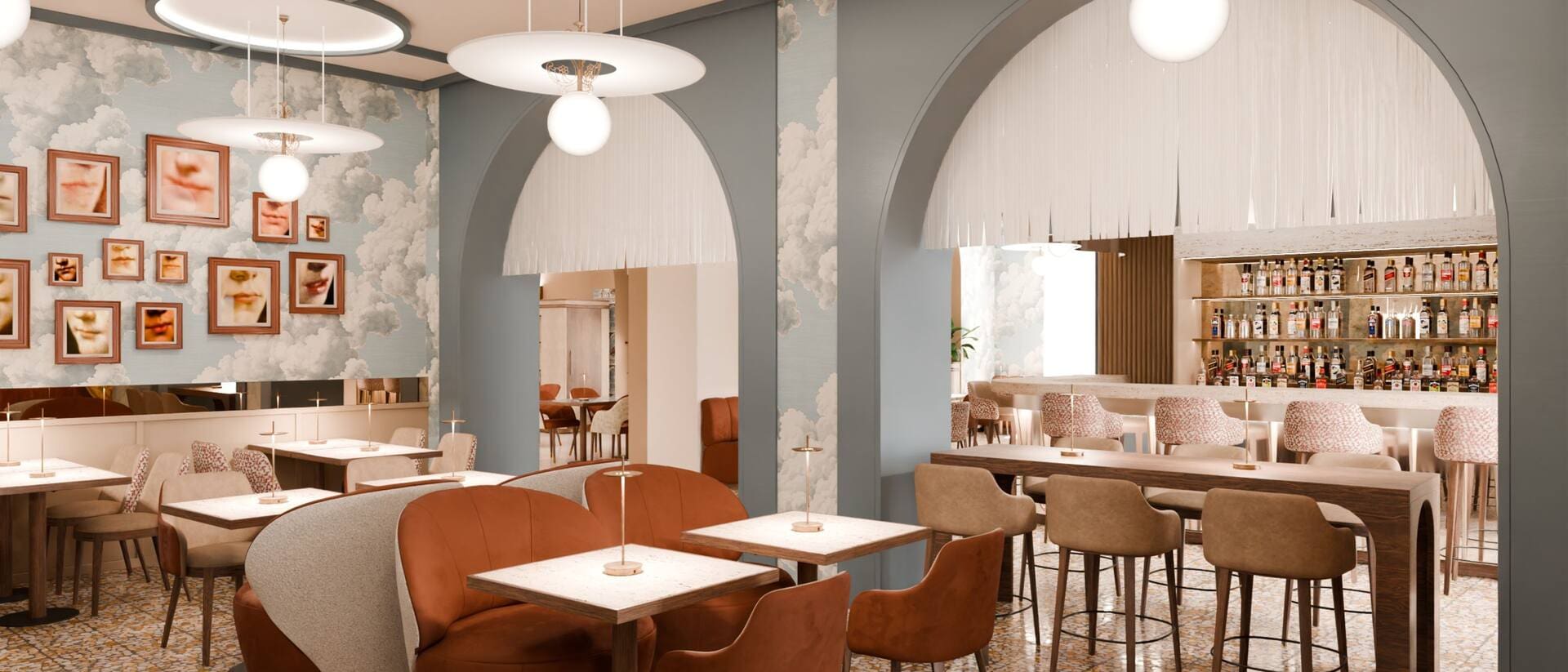 Situato nella Villa, accoglie gli ospiti dalle 11 alle 23 nei suoi spazi indoor e outdoor. Caratterizzato all’interno da un bancone con sedute e diverse sale dove concedersi pause rilassanti in una giornata di lavoro o visita della città.